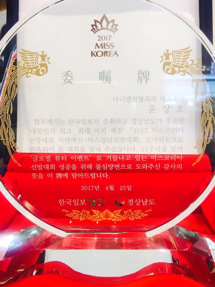 이번 61회주년을 맞는 미스 경남선발대회에 다니엘성형외과 '윤상호원장님'께서