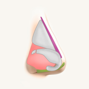 눈꺼풀 라인을 고려하여 눈썹 뼈부터 날렵하고 오똑한 콧대 라인을